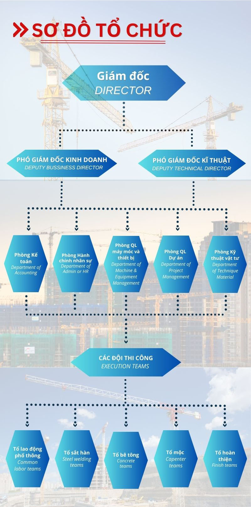 • Cho thuê máy móc và xe công trình: Cung cấp các loại máy móc và xe công trình chất lượng cao để phục vụ các dự án xây dựng hiệu quả.